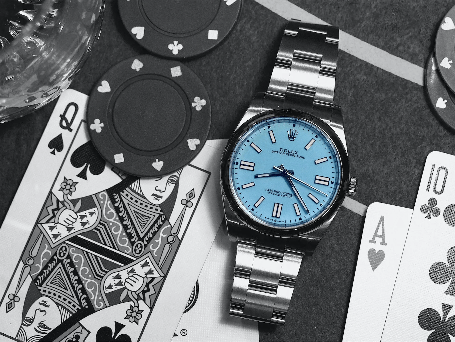 Rolex oyster perpetual "tiffany" dial.. A metal bracelet that all rolex enthusiasts appreciate is the oyster bracelet. Rolex oyster perpetual "tiffany" dial. This stainless steel bracelet type accompanies the rolex oyster perpetual 41mm tiffany 124300 the oyster bracelet is known for its comfort, durability, sporty look. What many enjoy about the bracelet is that it tapers down to the clasp. A metal bracelet that all rolex enthusiasts appreciate is the oyster bracelet.